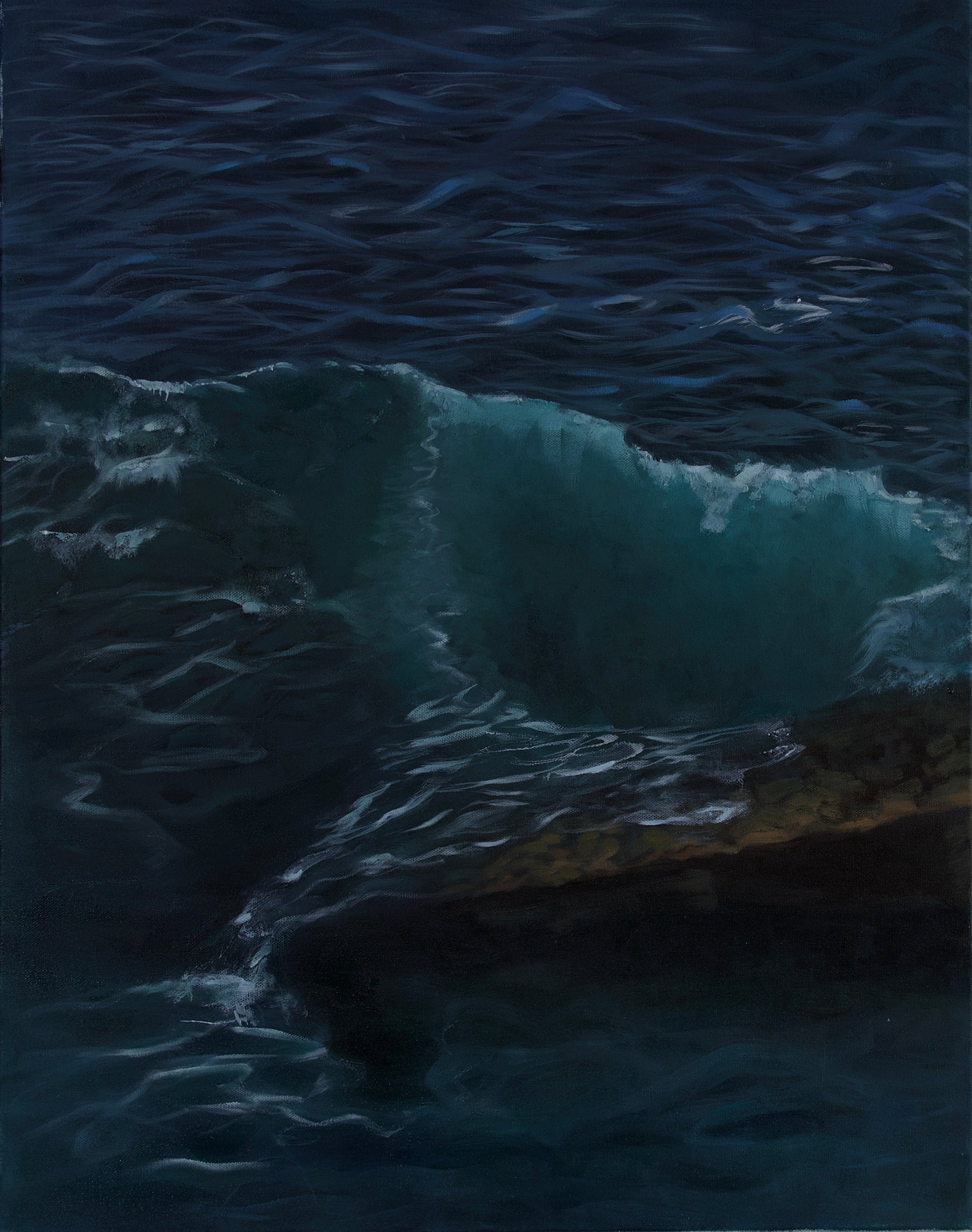 A moody, meditative seascape where dark waters fold into luminous turquoise. All is Time is inspired by the crashing seascapes off the cliffs of Shelly Beach in Manly, Sydney. The ebb and flow of the ocean over the rocks is a reminder of nature's endurance and stillness. Everything will happen for you in time, and there is nothing you need to do in this moment. Ideal for collectors drawn to ocean paintings that evoke serenity and timeless presence.